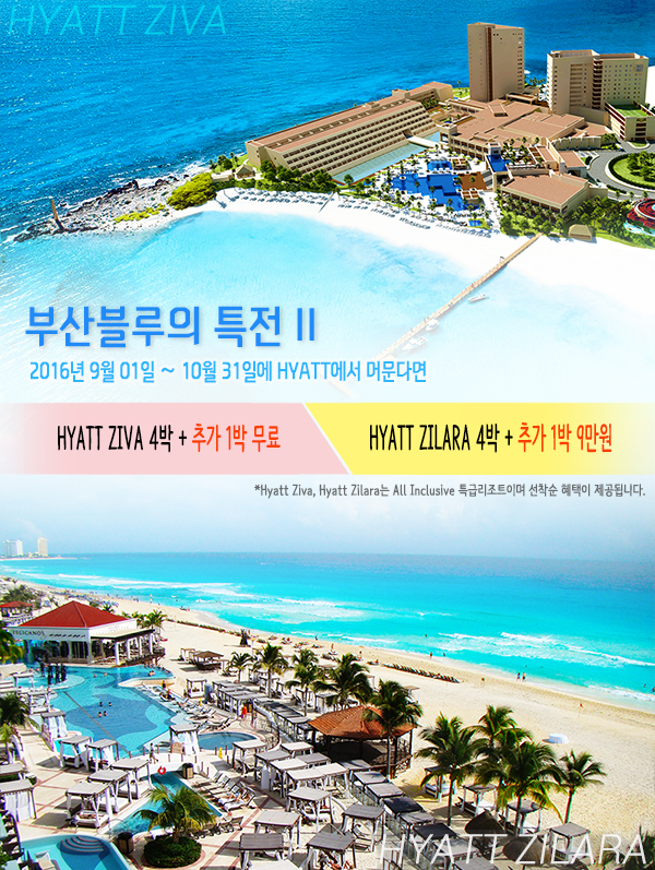 2016³â 9¿ù~10¿ù¿¡ Ä­Äï Hyatt Ziva¿Í Hyatt Zilara¸¦ ºÎ»êºí·ç¿©Çà»ç¿¡¼­ ¿¹¾àÀ» ÇϽøé